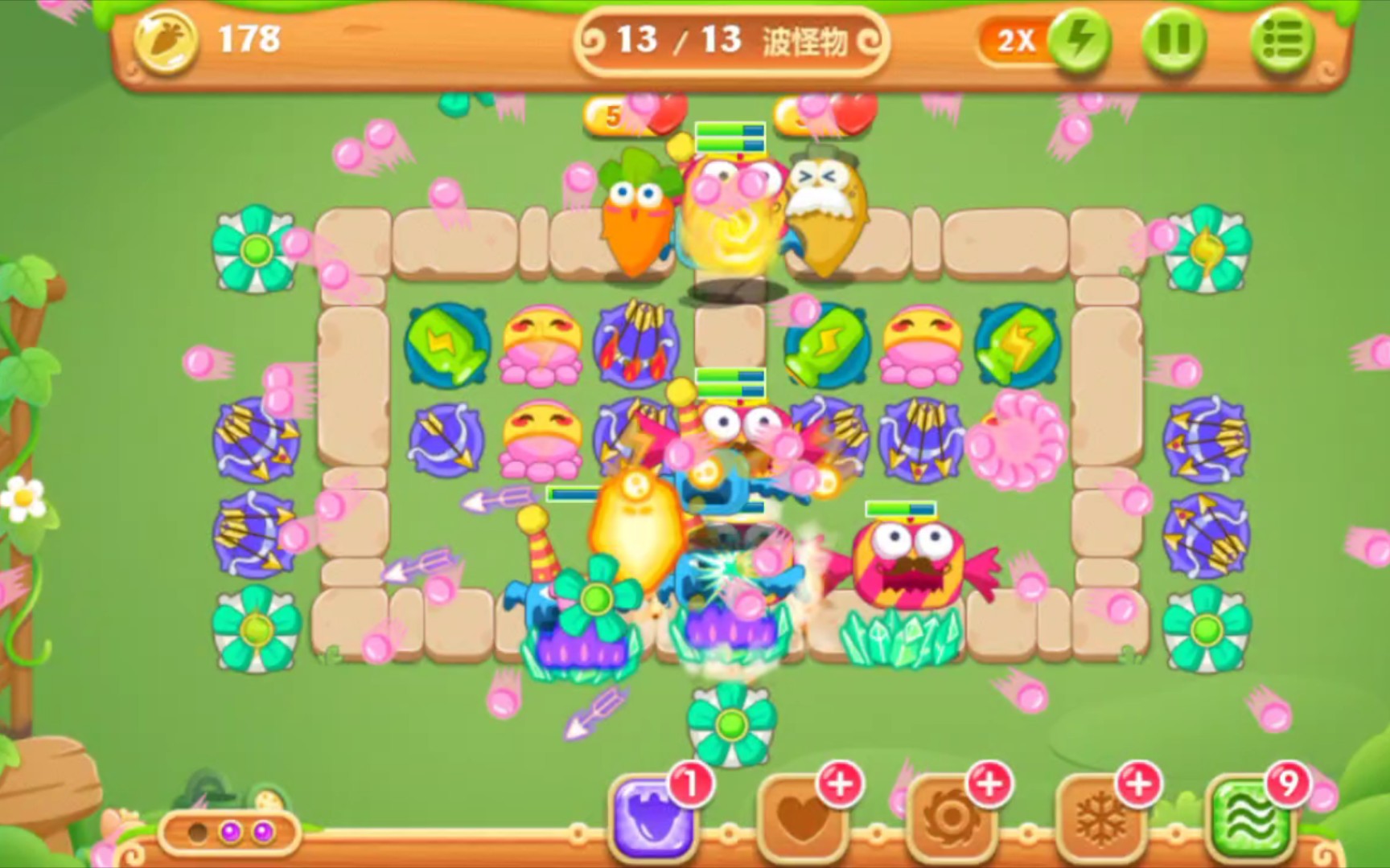 合理的资源管理与炮塔升级顺序是通关的保障。玩家需要密切关注金币增长,优先将核心输出炮塔升至满级。本关可用的炮塔包括瓶子、太阳、月亮、飞机和风扇等,应根据当前任务目标灵活选择搭配,例如在专注清理道具的阶段优先升级太阳炮塔,在应对高强度怪物波次时确保飞机或瓶子炮塔的火力。